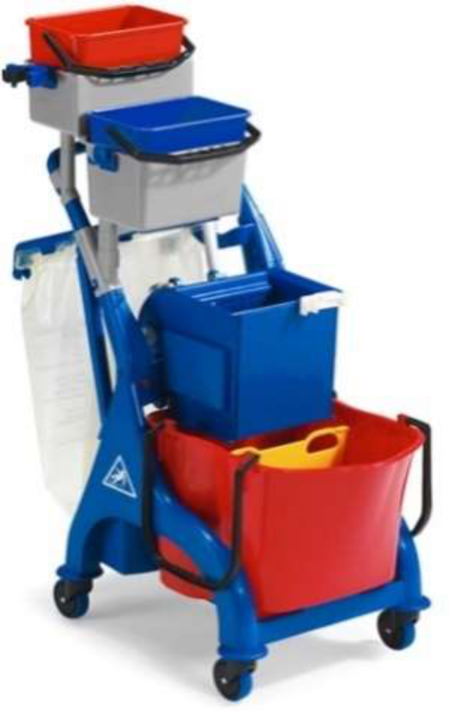 Carrello professionale in materiale VEGA, progettato per operazioni di pulizia avanzate in ambienti ad alta frequenza.